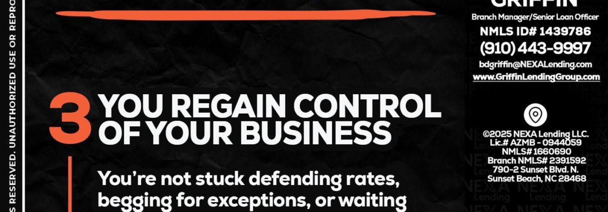 Hi, my name is Brian Griffin. I’m a Loan Officer with NEXA Lending LLC., offering personalized mortgage solutions, fast customized quotes, great rates and service with integrity.