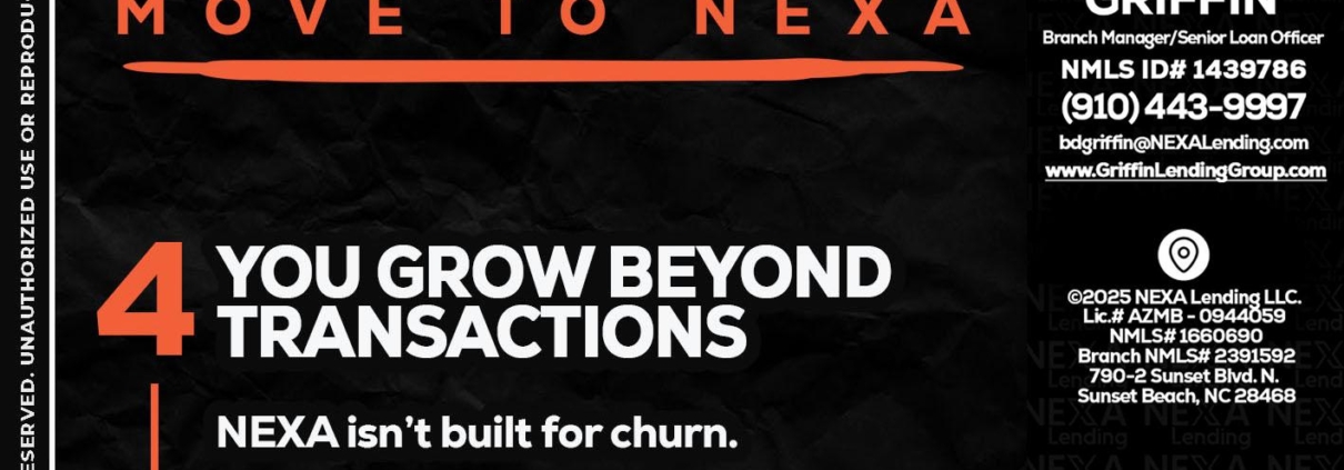 Hi, my name is Brian Griffin. I’m a Loan Officer with NEXA Lending LLC., offering personalized mortgage solutions, fast customized quotes, great rates and service with integrity.