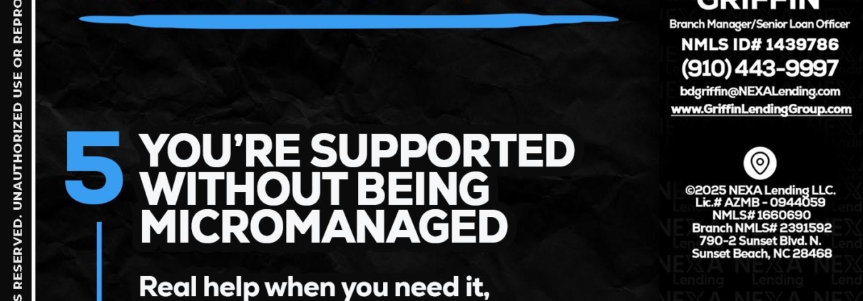 Hi, my name is Brian Griffin. I’m a Loan Officer with NEXA Lending LLC., offering personalized mortgage solutions, fast customized quotes, great rates and service with integrity.