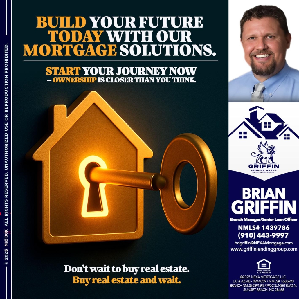 Hi, my name is Brian Griffin. I’m a Loan Officer with NEXA Mortgage LLC., offering personalized mortgage solutions, fast customized quotes, great rates and service with integrity.