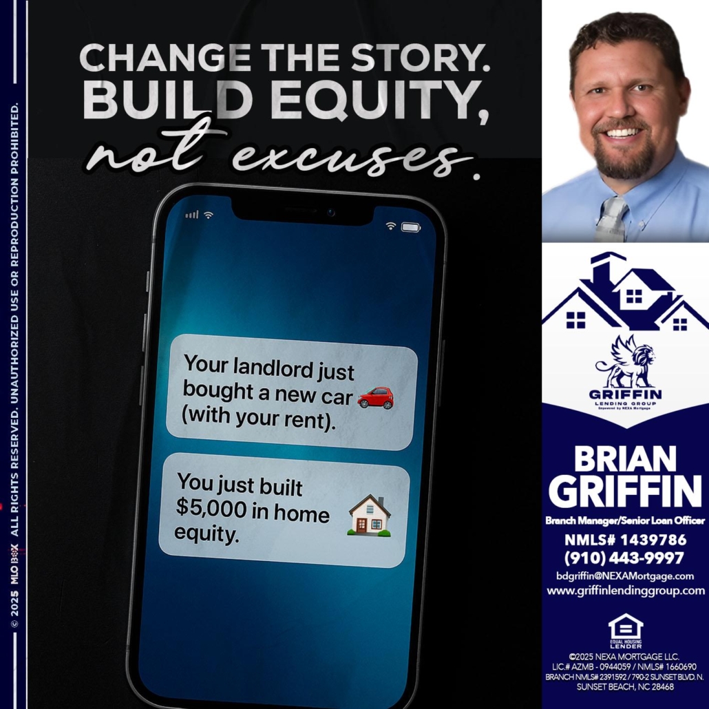 Hi, my name is Brian Griffin. I’m a Loan Officer with NEXA Mortgage LLC., offering personalized mortgage solutions, fast customized quotes, great rates and service with integrity.
