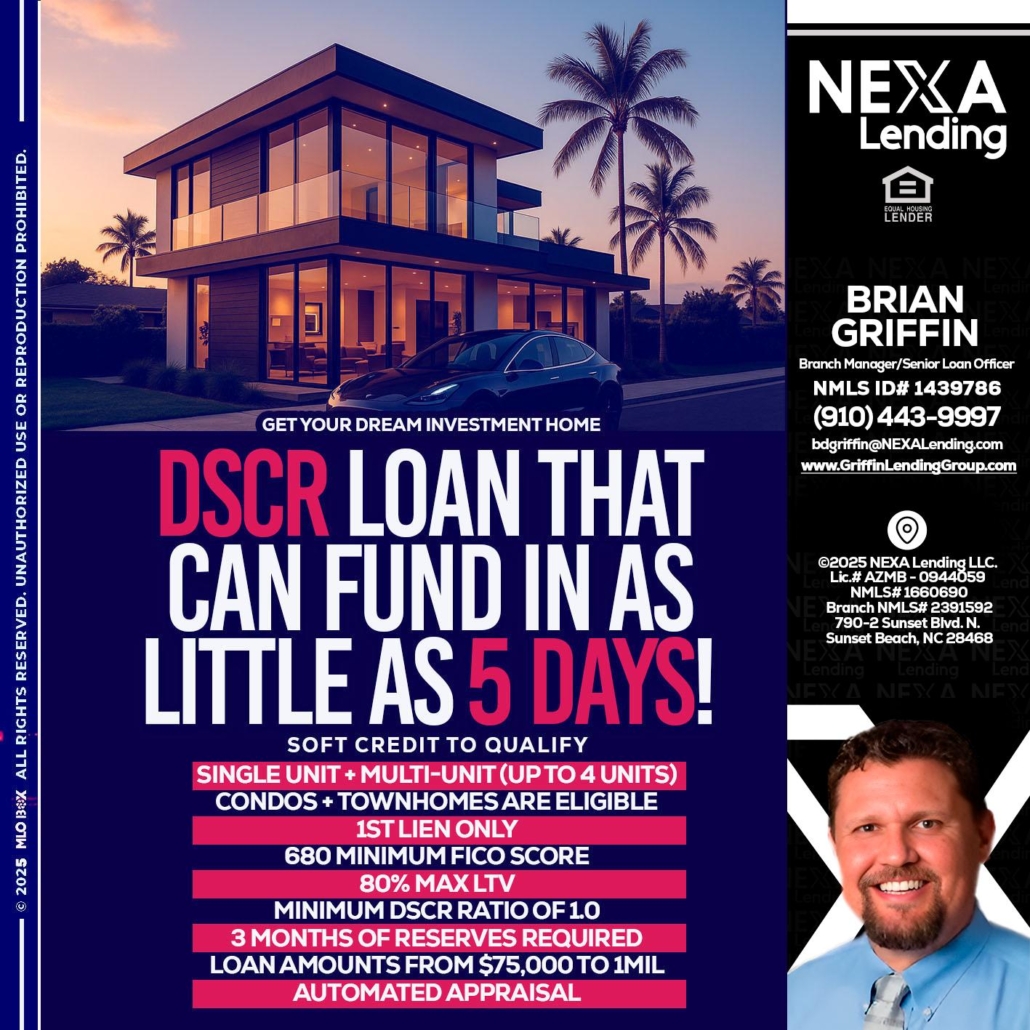 Hi, my name is Brian Griffin. I’m a Loan Officer with NEXA Mortgage LLC., offering personalized mortgage solutions, fast customized quotes, great rates and service with integrity.