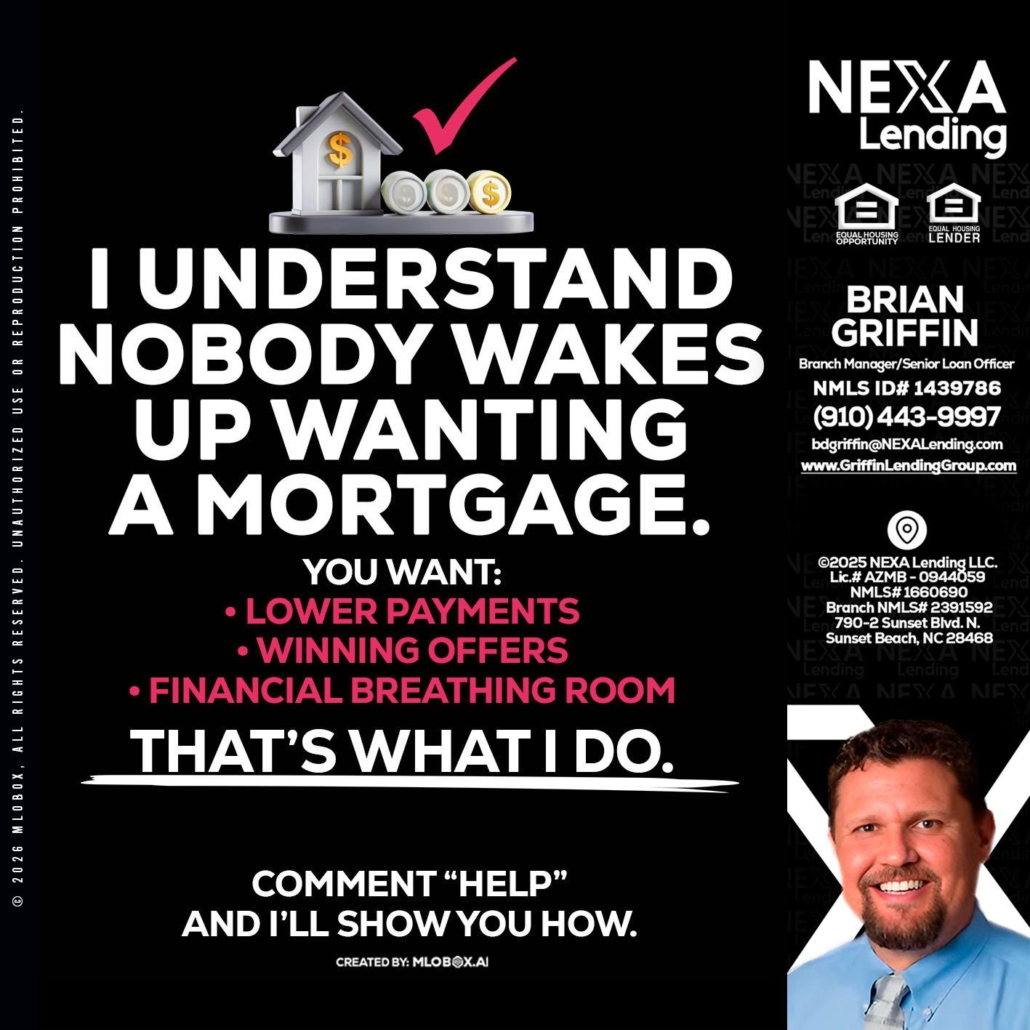 Hi, my name is Brian Griffin. I’m a Loan Officer with NEXA Lending LLC., offering personalized mortgage solutions, fast customized quotes, great rates and service with integrity.