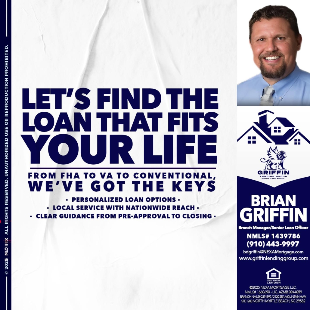 Hi, my name is Brian Griffin. I’m a Loan Officer with NEXA Mortgage LLC., offering personalized mortgage solutions, fast customized quotes, great rates and service with integrity.