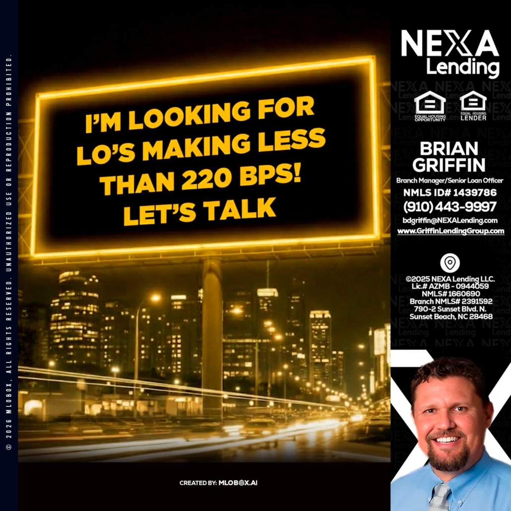 Hi, my name is Brian Griffin. I’m a Loan Officer with NEXA Lending LLC., offering personalized mortgage solutions, fast customized quotes, great rates and service with integrity.