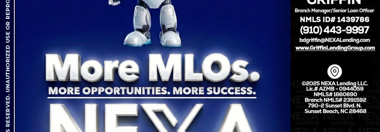 Hi, my name is Brian Griffin. I’m a Loan Officer with NEXA Lending LLC., offering personalized mortgage solutions, fast customized quotes, great rates and service with integrity.