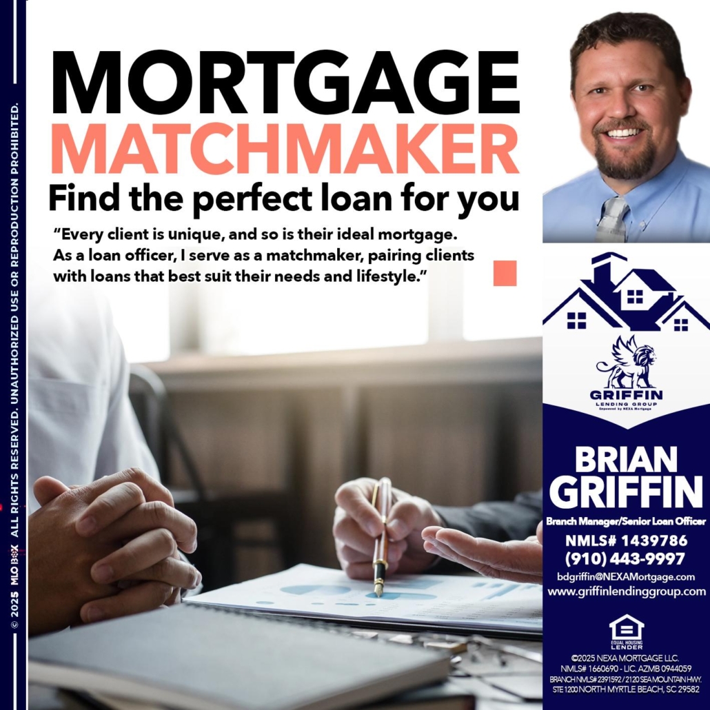 Hi, my name is Brian Griffin. I’m a Loan Officer with NEXA Mortgage LLC., offering personalized mortgage solutions, fast customized quotes, great rates and service with integrity.