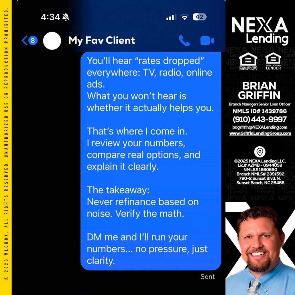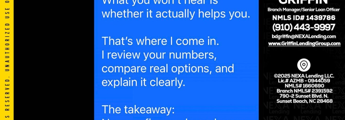 Hi, my name is Brian Griffin. I’m a Loan Officer with NEXA Lending LLC., offering personalized mortgage solutions, fast customized quotes, great rates and service with integrity.