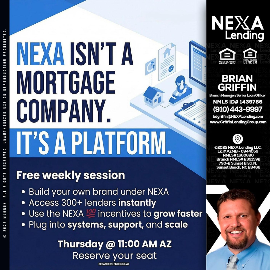Hi, my name is Brian Griffin. I’m a Loan Officer with NEXA Lending LLC., offering personalized mortgage solutions, fast customized quotes, great rates and service with integrity.