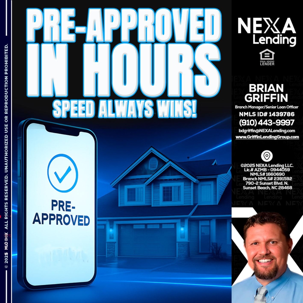 Hi, my name is Brian Griffin. I’m a Loan Officer with NEXA Mortgage LLC., offering personalized mortgage solutions, fast customized quotes, great rates and service with integrity.