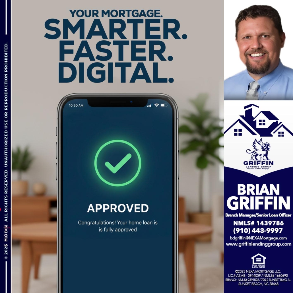 Hi, my name is Brian Griffin. I’m a Loan Officer with NEXA Mortgage LLC., offering personalized mortgage solutions, fast customized quotes, great rates and service with integrity.
