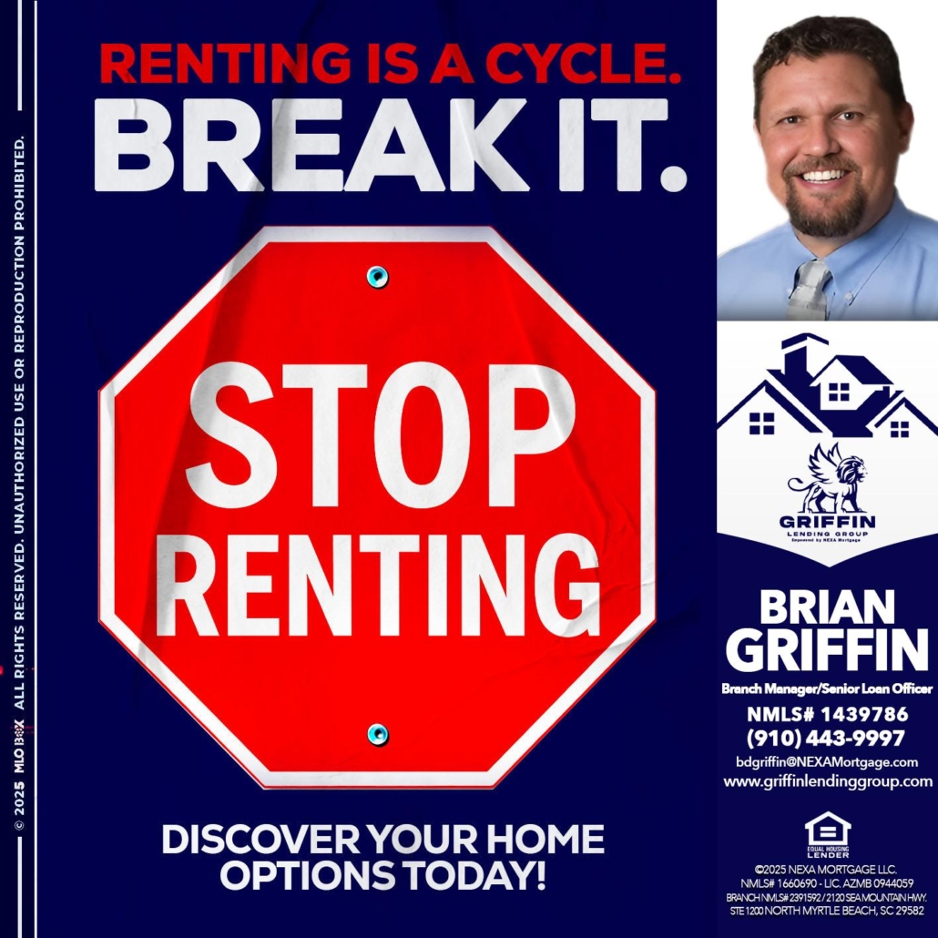 Hi, my name is Brian Griffin. I’m a Loan Officer with NEXA Mortgage LLC., offering personalized mortgage solutions, fast customized quotes, great rates and service with integrity.