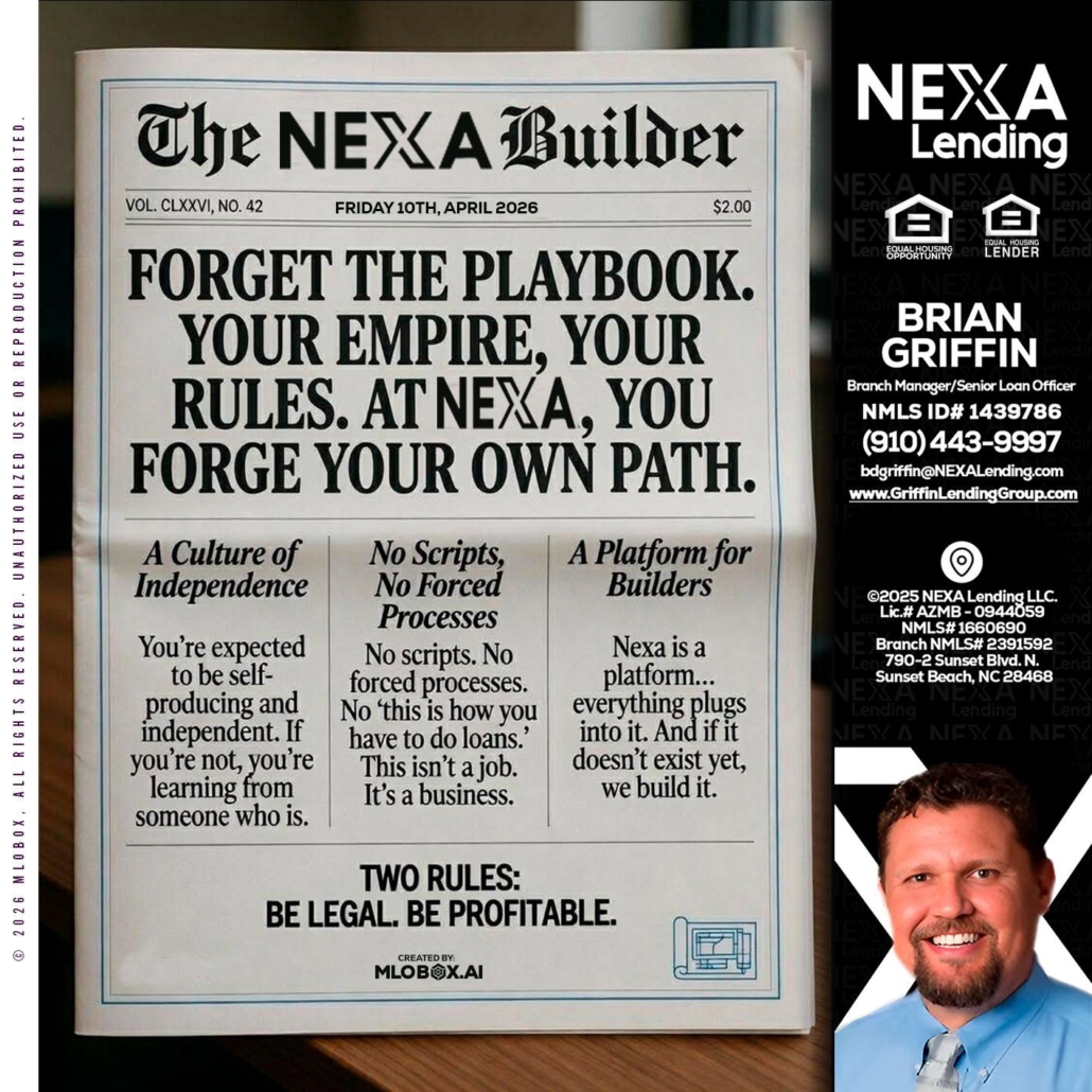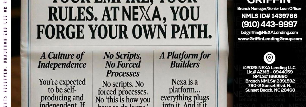 Hi, my name is Brian Griffin. I’m a Loan Officer with NEXA Lending LLC., offering personalized mortgage solutions, fast customized quotes, great rates and service with integrity.