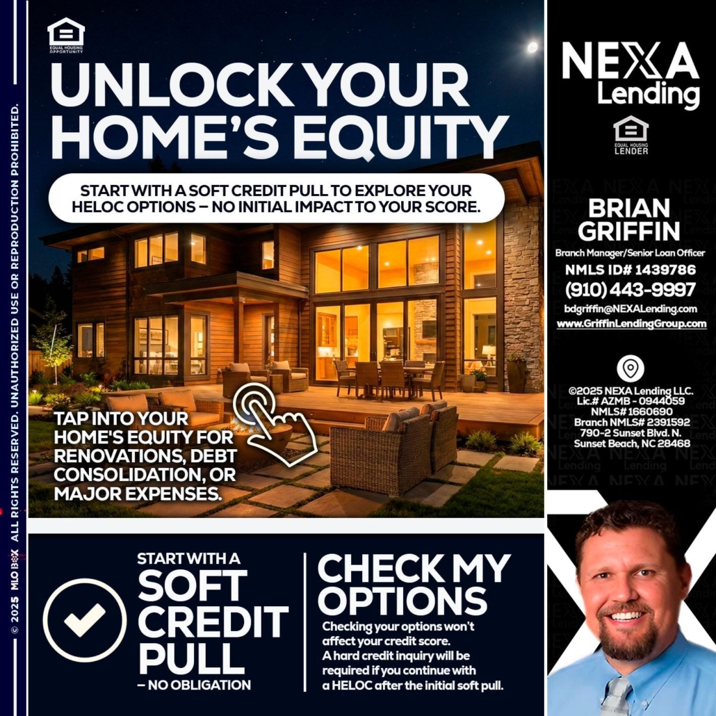 Hi, my name is Brian Griffin. I’m a Loan Officer with NEXA Lending LLC., offering personalized mortgage solutions, fast customized quotes, great rates and service with integrity.