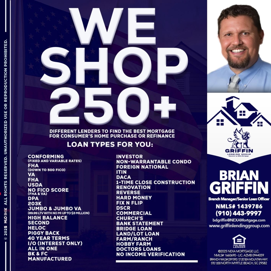 Hi, my name is Brian Griffin. I’m a Loan Officer with NEXA Mortgage LLC., offering personalized mortgage solutions, fast customized quotes, great rates and service with integrity.
