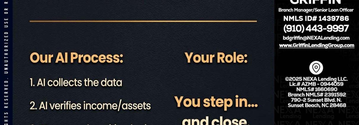 Hi, my name is Brian Griffin. I’m a Loan Officer with NEXA Lending LLC., offering personalized mortgage solutions, fast customized quotes, great rates and service with integrity.